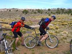Where the singletrack starts: Steve, Brian, Reuben, Gary, Andy and Juan. Photo by Dennis.